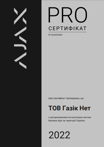 ТОВ «Газік Нет» є офіційним та сертифікованим партнером-інсталятором системи безпеки Ajax.